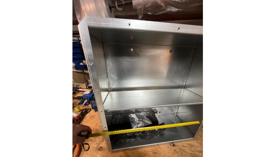 Крышка шкафа крепится на 12 болтах. Такая конструкция позволяет легко осуществлять её снятие при необходимости, например, для обслуживания или замены аккумуляторов.