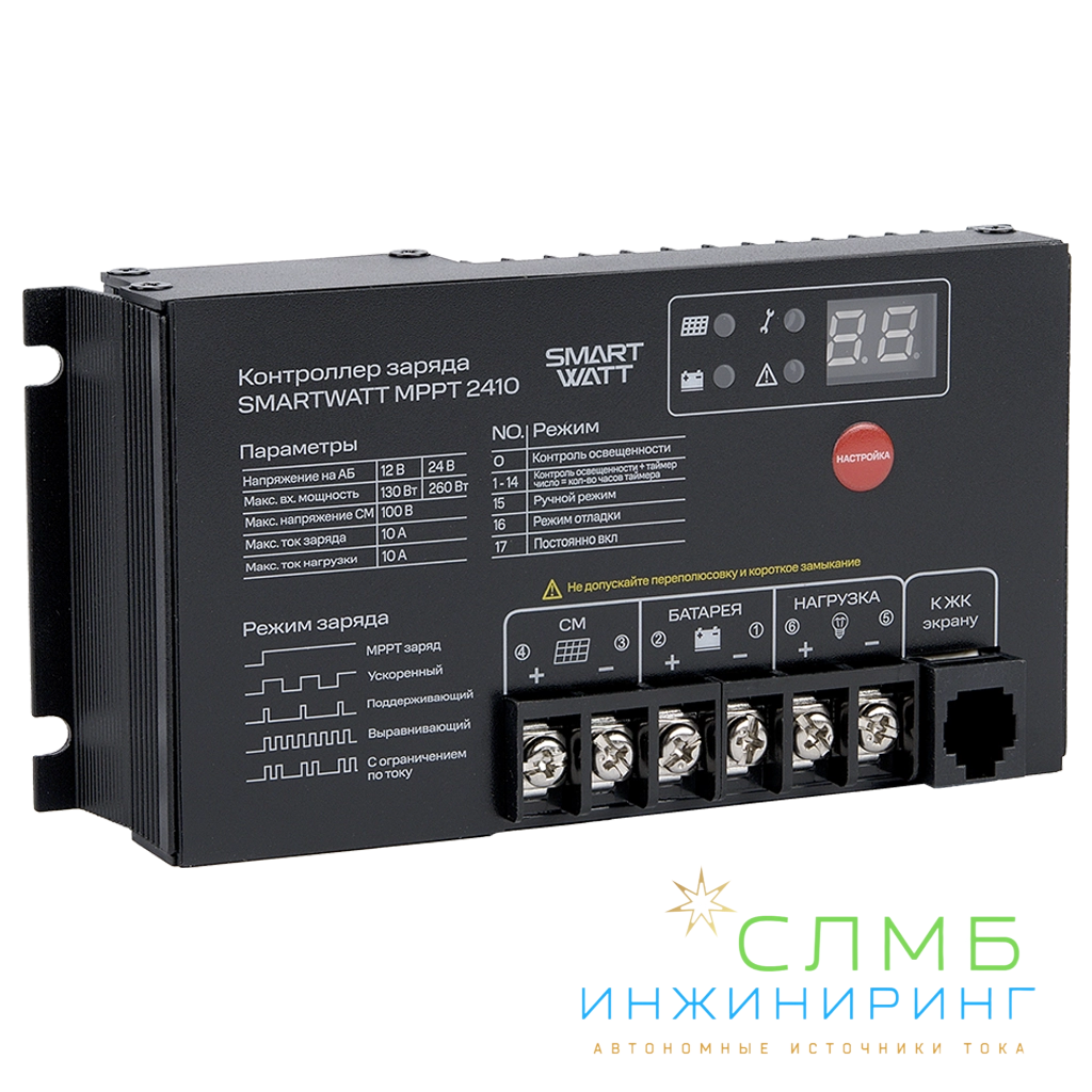 Солнечные контроллеры Контроллеры заряда для солнечных батарей служат для обеспечения эффективного заряда аккумуляторов от солнечных панелей. Они обеспечивают 3-х или 4-х стадийный заряд и защищают аккумулятор от перезаряда. Многие модели имеют выход для нагрузки постоянного тока и защищают аккумулятор от глубокого разряда. Солнечные контроллеры бывают 2 основных типов