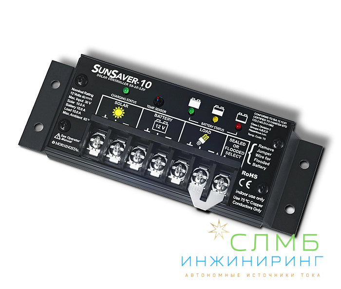 Контроллер Morningstar SunSaver является одним из наиболее часто используемых в мире компактных солнечных контроллеров для профессионального или бытового применения. Имеет анодизированный алюминиевый корпус, противосолевые терминалы и запечатанную в эпокси-капсулу электронику.