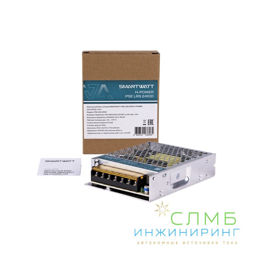 Импульсный блок питания SMARTWATT PSE LRS 24100 линейки H-POWER обеспечивает качественное электроснабжение потребителей, преобразуя напряжение сети переменного тока в стабилизированное напряжение постоянного тока. Предназначен для стабильного и надежного питания электронных компонентов внутри готовых изделий, роботов, медицинского оборудования, а также линий освещения и светодиодных лент, камер видеонаблюдения и охранных извещателей.