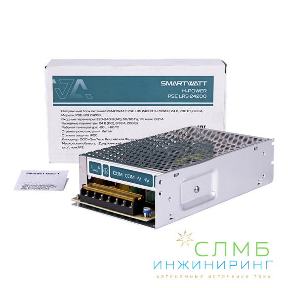 Импульсный блок питания SMARTWATT PSE LRS 24200 линейки H-POWER обеспечивает качественное электроснабжение потребителей, преобразуя напряжение сети переменного тока в стабилизированное напряжение постоянного тока. Предназначен для стабильного и надежного питания электронных компонентов внутри готовых изделий, роботов, медицинского оборудования, а также линий освещения и светодиодных лент, камер видеонаблюдения и охранных извещателей.