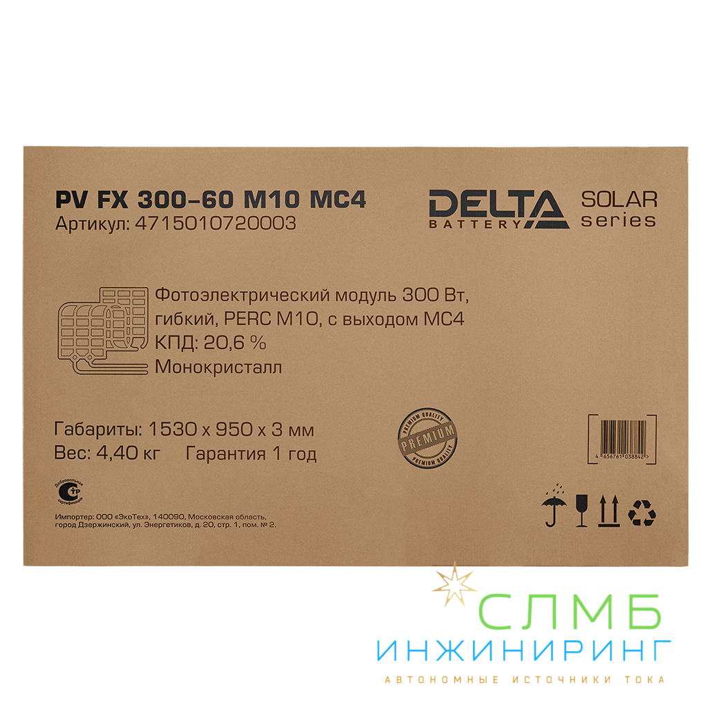 Гибкая солнечная панель PV FX 300-60 M10 MC4 с выходом MC4, мощностью 300 Вт, номинальным напряжением 24В.