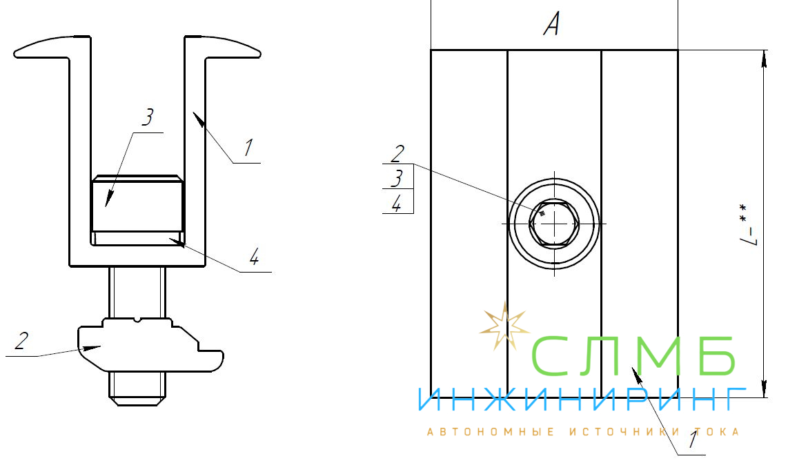 Предназначается для монтажа массива ФЭМ "с углом" и "без угла", а также для монтажа на мини-рейл.